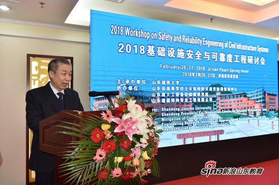 靳奉祥首先致辭,對(duì)參會(huì)的領(lǐng)導(dǎo)和專家學(xué)者表示誠摯的歡迎,并介紹了山東建筑大學(xué)建設(shè)發(fā)展的基本情況。靳奉祥表示,此次研討會(huì)的召開,將推動(dòng)我國基礎(chǔ)設(shè)施的安全與可靠度領(lǐng)域研究,對(duì)山東基礎(chǔ)設(shè)施建設(shè)發(fā)展及新舊動(dòng)能轉(zhuǎn)換的實(shí)施將帶來積極影響。