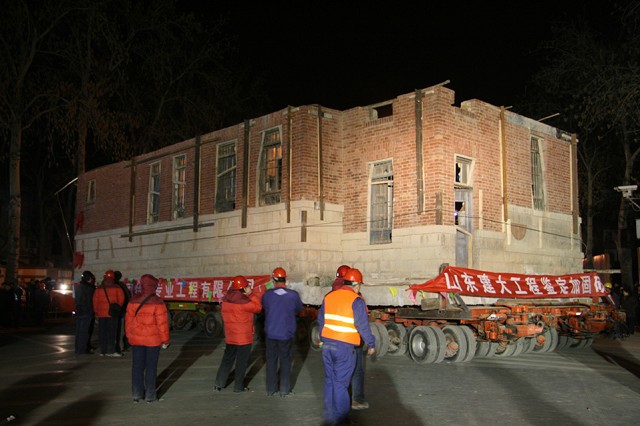 2009年3月1日,山東建筑大學(xué)工程鑒定加固研究所在國內(nèi)首次采用大距離原樣整體遷移技術(shù)將其遷移30公里, 此工程是我國建筑物整體遷移技術(shù)發(fā)展的一個重大突破。