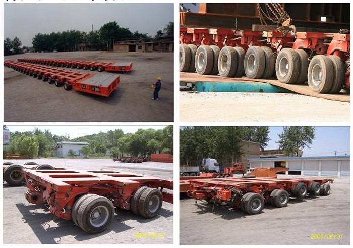 該大型液壓平板拖車,由載重部分和牽引部分組成,自身具有動力裝置。