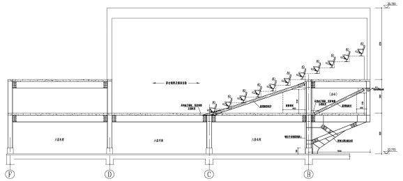 圖3 巨幕影廳鋼斜桿加固懸挑結(jié)構(gòu)剖面示意圖