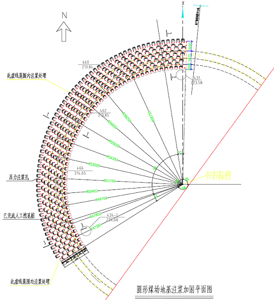 華能白楊河電廠2×300MW級(jí)以大代小供熱機(jī)組圓形煤場局部存在新近回填土體,對(duì)該場地進(jìn)行注漿加固處理。采用沖擊成孔,成孔過程中可以通過振動(dòng)擠壓使周圍土體密實(shí)同時(shí)防止塌孔,另外還可以避免由于泥漿護(hù)壁成孔造成的土體含水量增大從而影響注漿效果及泥漿滲透。經(jīng)過注漿加固處理后的地基滿足變形模量不小于18MPa。
