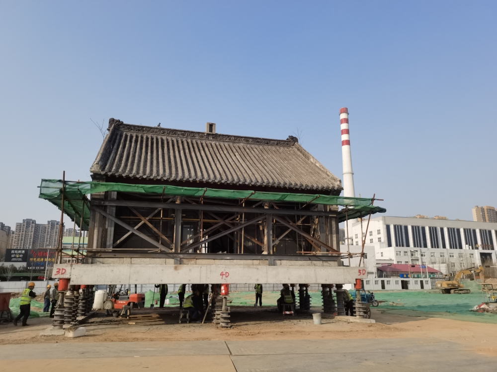 濟(jì)南市歷下區(qū)科技城片區(qū)“三元宮”始建于近400多年前的明朝,它曾是一處道教宮。為磚木結(jié)構(gòu),1間1層樓閣式,建筑占地面積約70平方米。硬山頂,前面設(shè)廊,室內(nèi)設(shè)四榀五檁抬梁木構(gòu)架。本次遷移重量280噸,遷移距離255米。