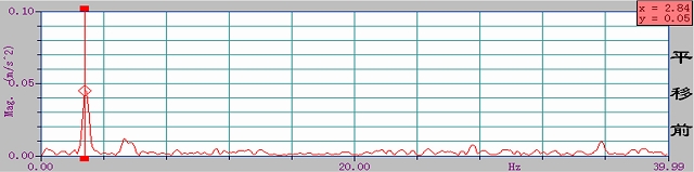 平移前的測試結(jié)果:根據(jù)實測的實時譜曲線,平移前二層樓面振動測點的主頻為2.84HZ(振動周期0.35s)。