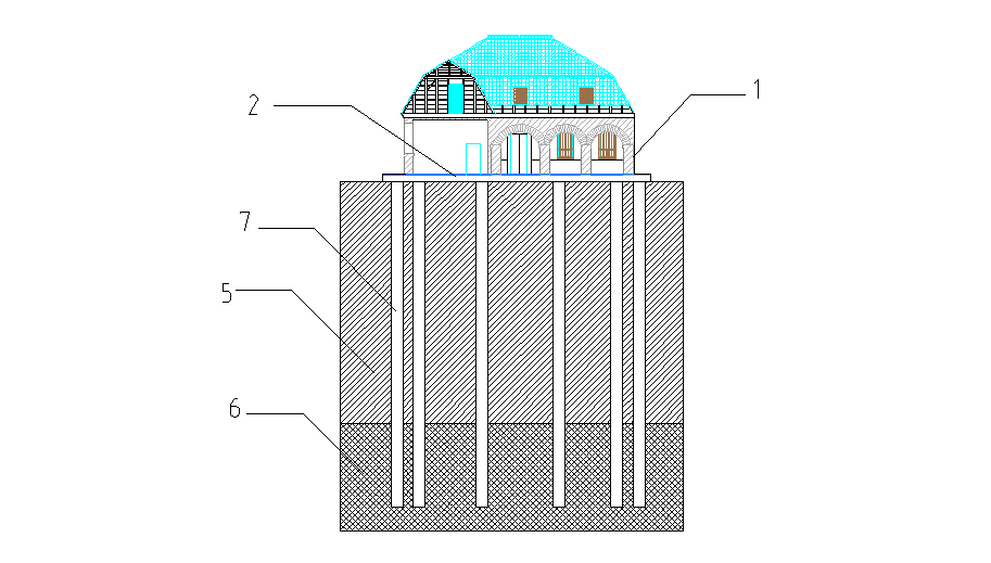 濟(jì)南皮膚病醫(yī)院位于濟(jì)南市中山公園東老商埠一期地塊內(nèi),歷時(shí)百年,為仿德式歷史風(fēng)貌建筑。該建筑物為單層帶局部地下室的砌體結(jié)構(gòu),建筑面積約165.08平方米,其南立面見圖8。山東融匯建設(shè)開發(fā)有限公司在對(duì)該地塊開發(fā)的同時(shí),本著保護(hù)文物傳承文化的目的,擬對(duì)該建筑原址保護(hù),并在其下方增設(shè)三層地下停車場(chǎng)。