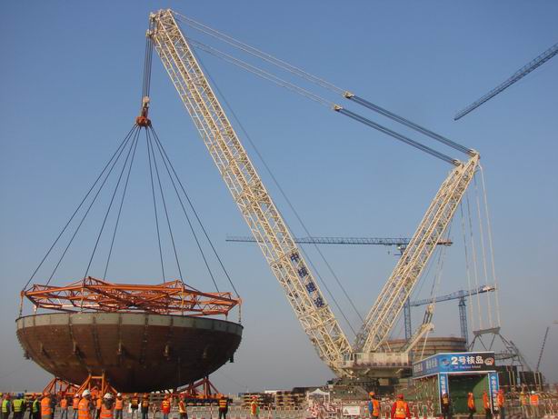 海陽核電一期工程2號(hào)核島鋼制安全殼底封頭成功就位